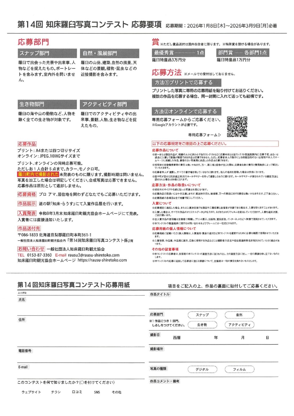 一般社団法人 知床羅臼町観光協会内 「第14回知床羅臼写真コンテスト係」宛